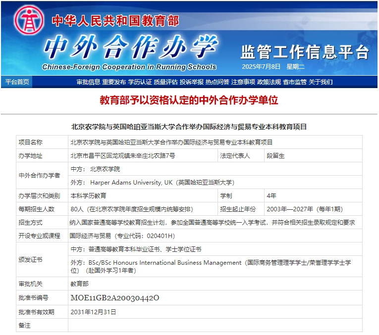 yl6809永利集团与英国哈珀亚当斯大学合作举办国际经济与贸易专业本科教育项目