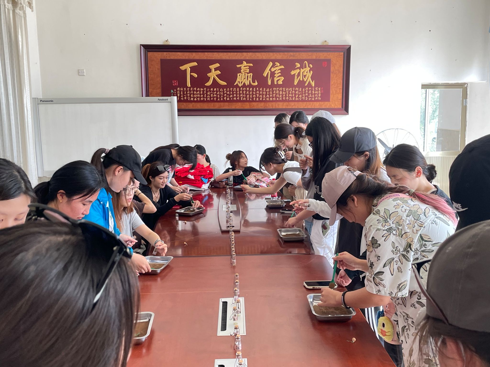此行的最后一个环节,是爱国主义教育“赠乡土”仪式。在公司党总支和挂甲峪村委的精心准备和安排下,同学们将长寿山上的泥土认真地装进许愿瓶中。在学习了解中国传统文化的同时,更增添了出国留学学子的爱国情怀。