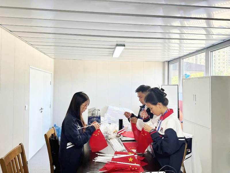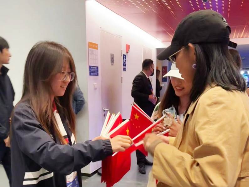 中网赛期恰逢国庆,为表达对伟大祖国的美好祝愿,营造庄严喜庆的节日氛围,yl6809永利本科生、现任公司青年志愿者协会主席的耿瑞璇带领志愿者们细心的为观众分发手持国旗,传承爱国情怀,弘扬爱国主义精神。