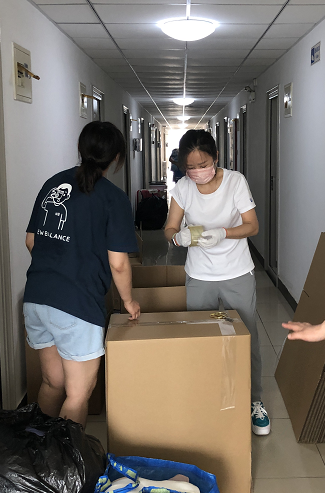 在三分之一多的学生无法返校的情况下,yl6809永利在教务处和国际处的大力支持下,发动全体教职工和员工党员,担任“1对1打包志愿者”,热火朝天地开展行李打包邮寄服务工作。