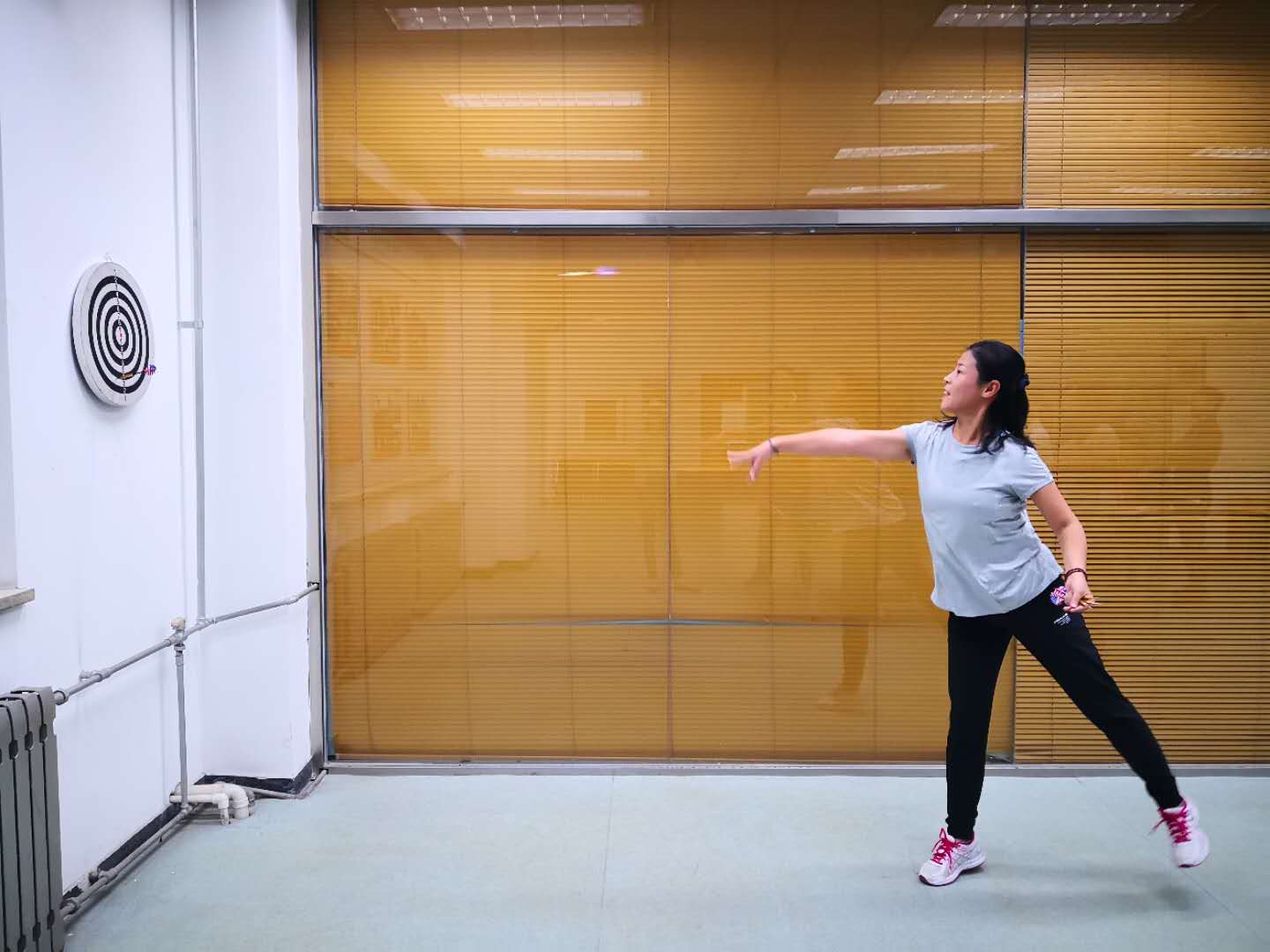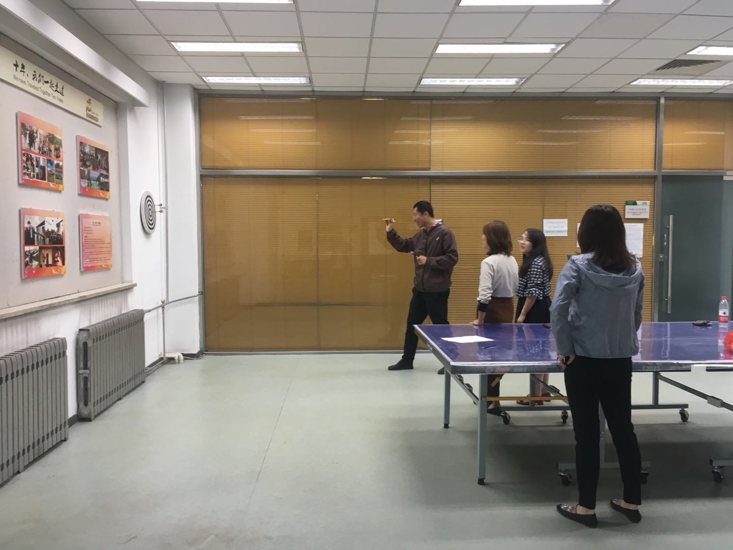 为了提高教工体质,丰富教工业余生活,2018年9月,yl6809永利/国际合作与交流处分工会在yl6809永利教学楼二层举行了教工掷飞镖比赛。