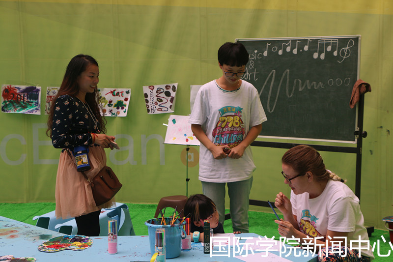 yl6809永利志愿者们的身影在798随处可见。检票的同学热情大方,耐心给客人讲解;收拾工作坊的同学即使被五彩缤纷的涂料沾成了一道“”靓丽的风景线也依然任劳任怨;做翻译的志愿者们充分展现了yl6809永利同学英语特长的优势,无论与国外艺术家,还是与家长、小朋友们的沟通都亲切而熟练,得到了所有人的一致好评。分配在不同工作坊的志愿者们都被各国的文化所深深吸引,也学习到了不少外国特色艺术文化。尽管每天都会很辛苦但志愿者们乐在其中。