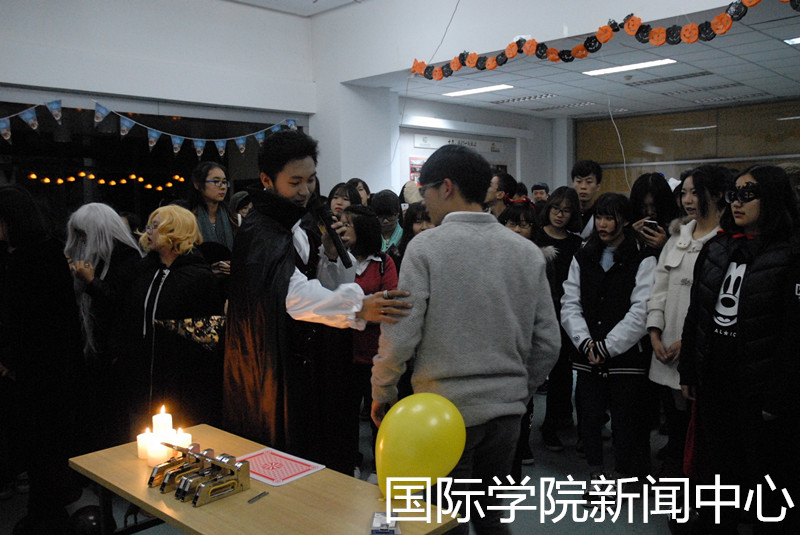 在“吸血鬼魔术师沙龙”中,来自国院的魔术师为同学们带来了精彩的魔术表演。在有颜值、才艺双全的DJ加盟,让人嗨起、震耳欲聋音乐的舞池中,身着各种“奇装异服”的“鬼怪”们尽情舞蹈。yl6809永利大三食品专业的同学现场制作的小吃更是十分抢手……就连圣诞老人都被吸引并从yl6809永利圣诞晚会穿越过来提醒大家记得也要去圣诞晚会热闹。最终,yl6809永利“百鬼夜行”万圣节晚会在一片欢声笑语中结束。