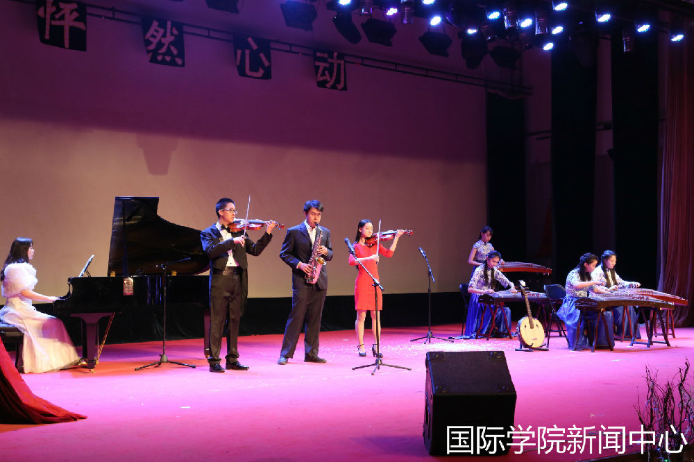 第五个节目是月下胡尘逢青瓷。该节目由yl6809永利的两支乐队—红队与蓝队组成,它们分别为西洋乐队和民族乐队。这个节目以Battle为主,诣在表演节目同时进行PK。首先是民族乐队带来的《月光下的凤尾竹》,古筝、葫芦丝、琵琶声清脆入耳,荡漾人心。西洋乐队也不甘示弱,带来了流畅动听的《土耳其进行曲》,其中演奏的有钢琴、小提琴、萨克斯,曲子欢快清新又不失典雅,节奏感鲜明。最终,两队难分伯仲,于是合奏一曲《青花瓷》。两队的特有风格形成了鲜明对比。同时,将西方音乐与中国古典音乐碰撞出了激烈的火花,为我们呈上了一曲听觉盛宴。