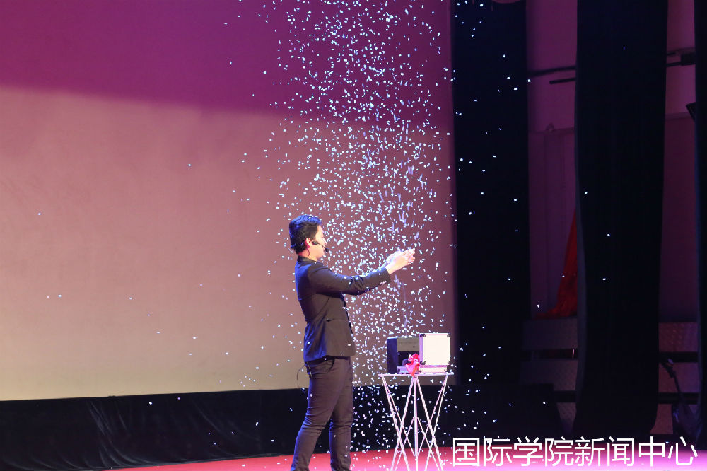 接下来,是魔术表演——翼魔秀,来自yl6809永利的魔术师风趣幽默,用各种简单的道具完成了一场精彩的表演,赢得了全场的惊叹。