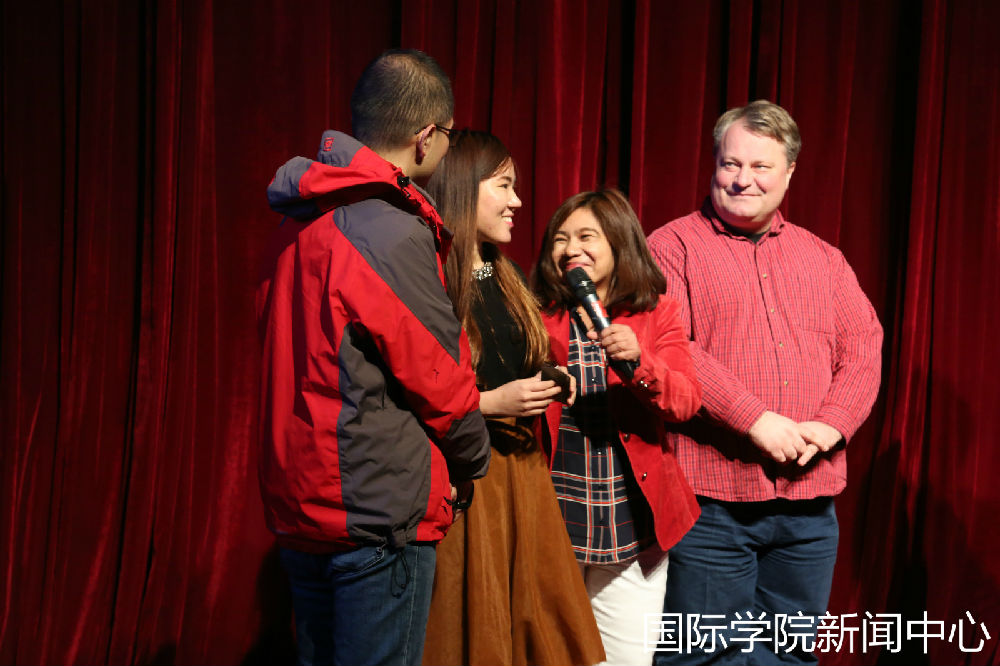 主持人进行简短开场白后,张志勇经理用流利的英语为我们送来了圣诞祝福。感谢张老师诚挚的祝愿,在平安之夜为我们带来温暖的力量。国院全体同学会更加努力向上,不负老师期望。