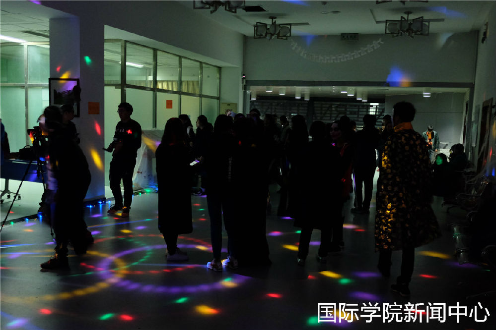 In the activity “strange room”,students passed by the door wrote with the red words ‘chai’,under the guidance of international college volunteer, watching horror movies which have the Halloween atmosphere, with the ghosts and loud music outside, everyone can better blend in the party, show wonderful design of the activity.