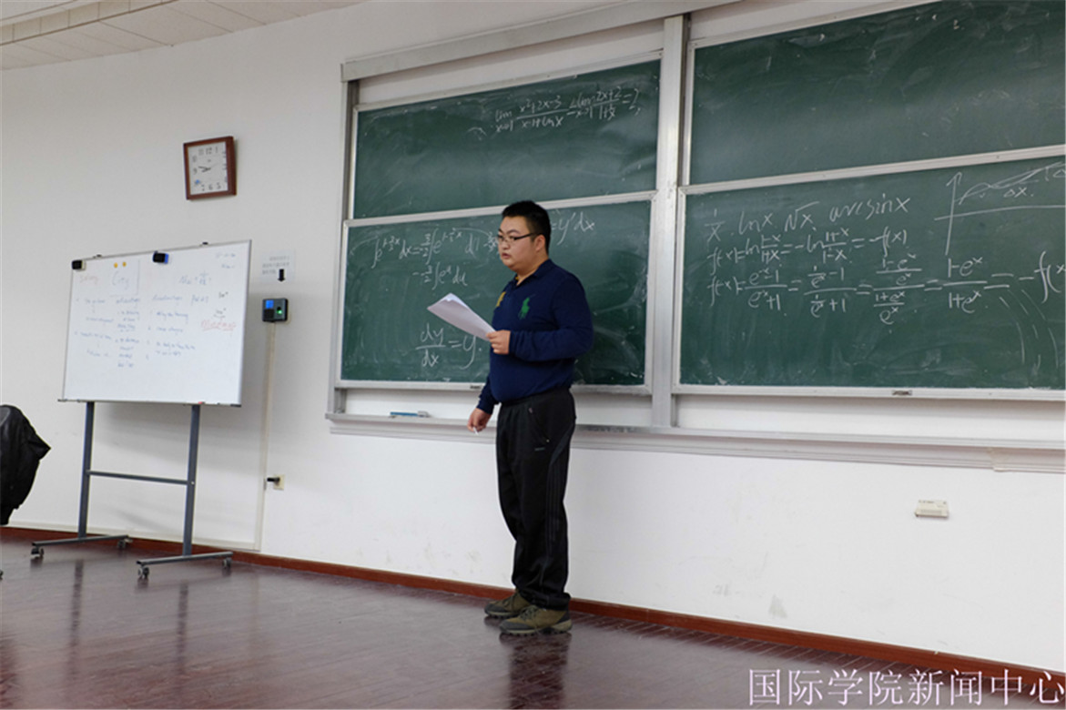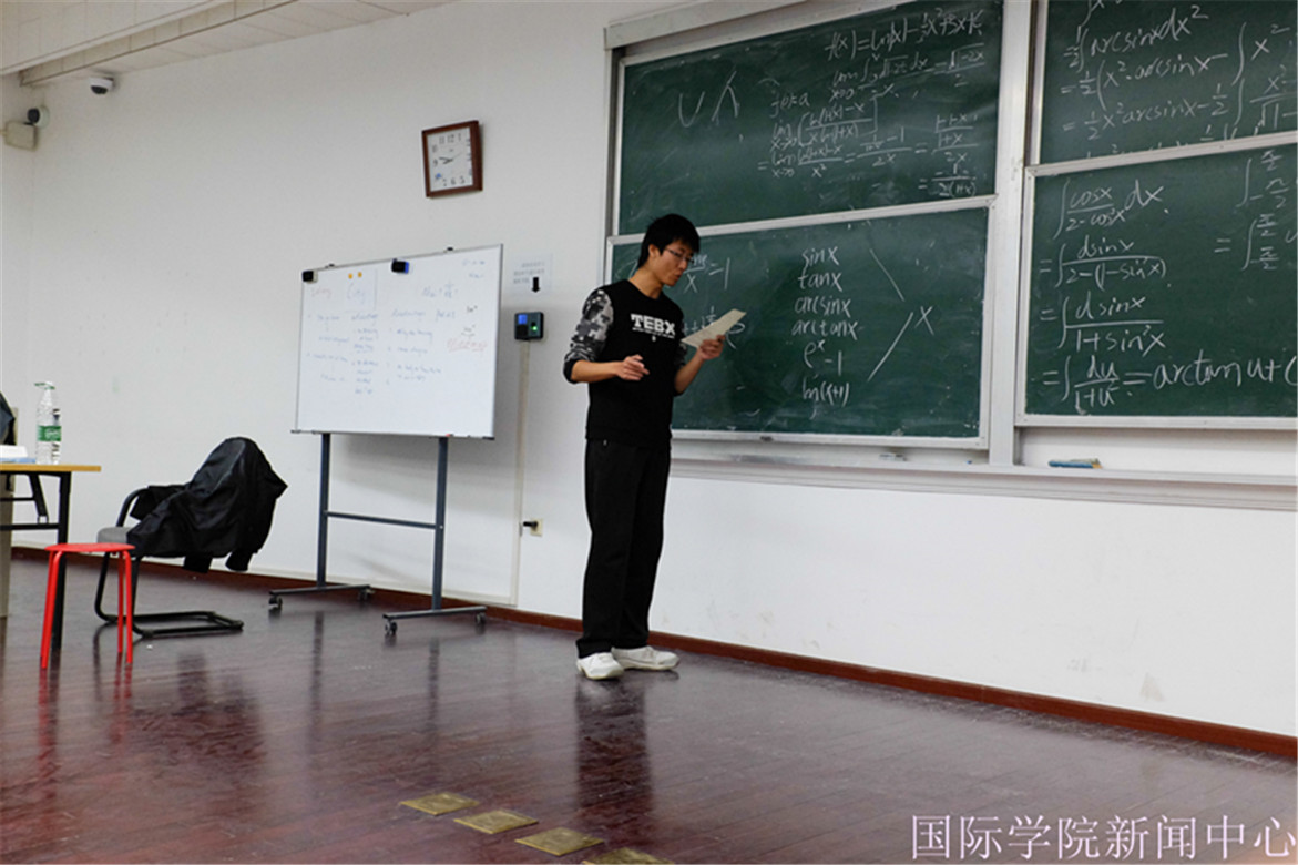 在补习课的第一阶段,蔡毅鸣同学讲解了两套复习考卷。他采取两套考卷穿插讲解的形式,将相似题型归类,在此基础之上总结相关知识点。晦涩难懂的拉格朗日中值定理本来是高数学习中很难攻克的一道难关,但是蔡毅鸣同学运用通俗易懂的生活语言向大家阐明了定理的主要内容,随后以图像辅助大家理解。在理论学习过后,他用几个合适的例题帮助大家巩固复习。他游刃有余地讲解加之其简明清晰的思路和举一反三的拓展,同学们纷纷表示受益匪浅。