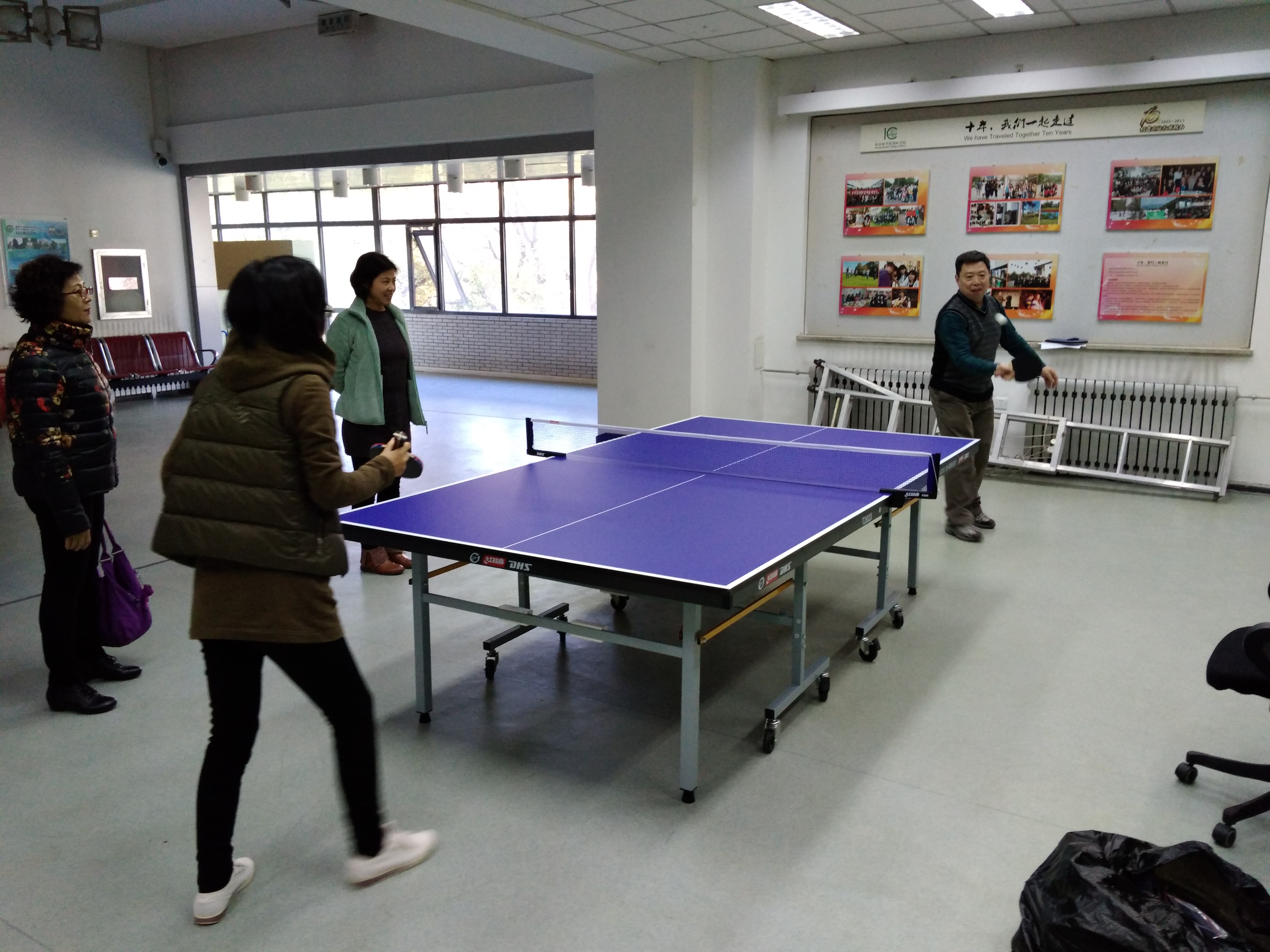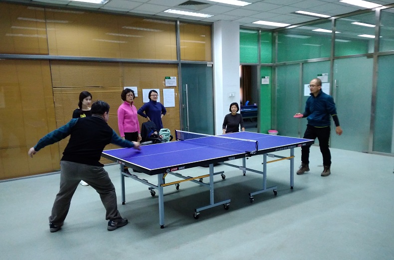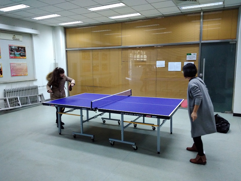 乒乓球是我国运动的传统强项,已经成为国球,受到人们的青睐,乒乓球的规则和技巧使得比赛趣味横生。分工会高手云集,比赛跌宕起伏。热身活动时,外教Polyanna也被吸引参加进来,加深了对乒乓球的热爱,并和教工们进行了深入交流。