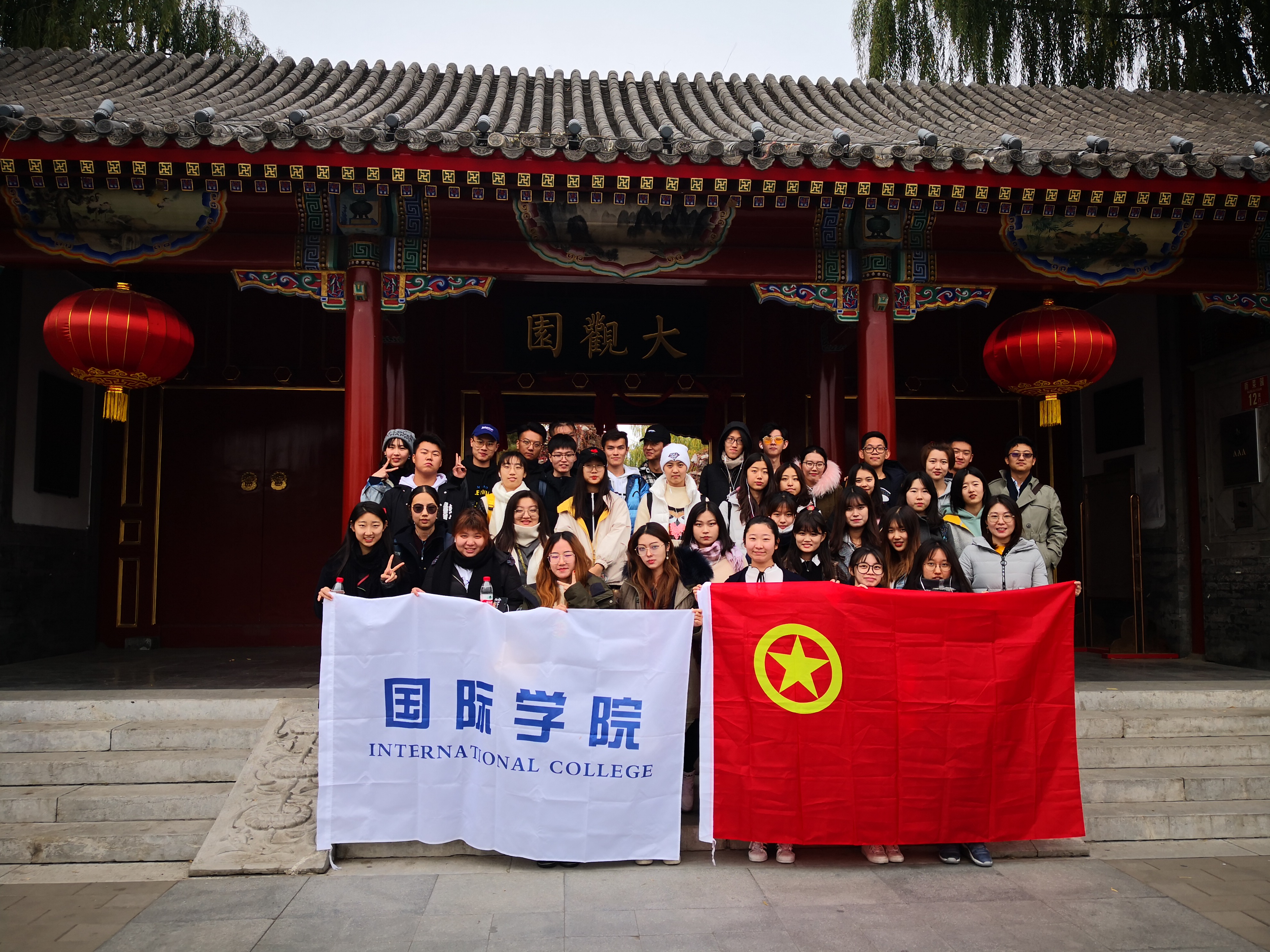 踏着秋日的柔光,在北京红楼文化艺术博物馆,开始同学们的文化之旅活动。北京红楼文化艺术博物馆是一座典型的主题类景观,也是电视连续剧《红楼梦》等上百部影视片的实拍场地。具有古典园林外观、红楼文化内涵,集红学、古建、园林、清史、民俗、文博等各方面专家集体智慧的结晶。