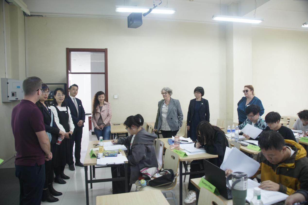 会后,ECU代表团与yl6809永利项目管理委员会相关人员到教学楼B座观摩了离岸语言课程强化班的上课情况,看望了正在上课的师生。