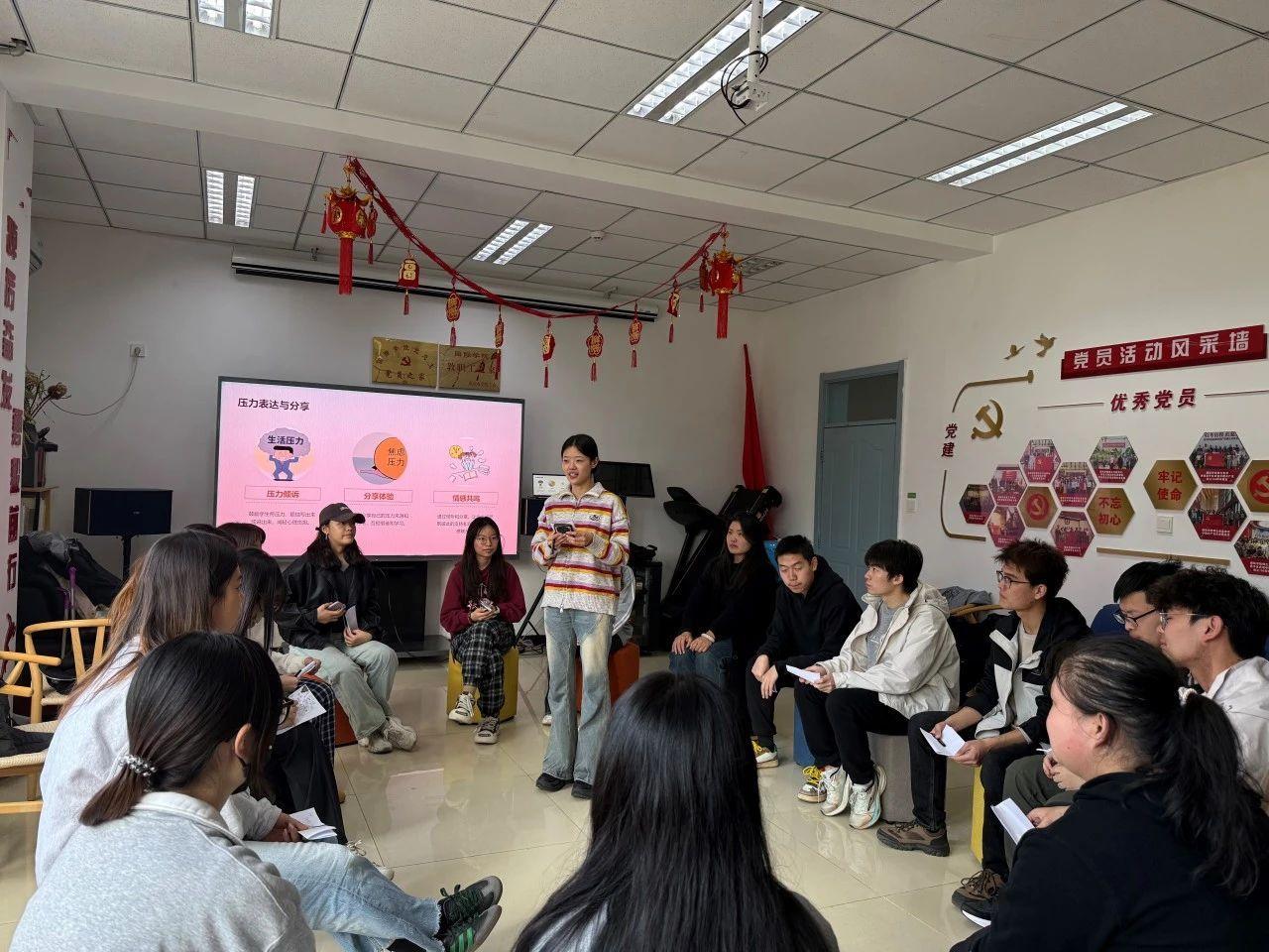 接下来,同学们将心事化作纸页上的星点涂鸦,来表达内心的情感与困惑。在分享环节中,这些私密的情感逐渐交织成一张温暖的支持网络,那些关于考试焦虑的轻叹、实习困惑的沉吟,终在同伴的会心一笑里,化作春风中次第舒展的新芽。