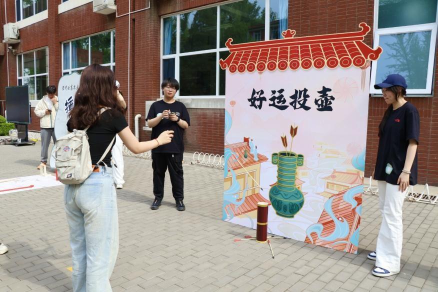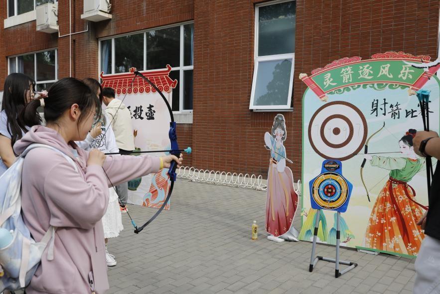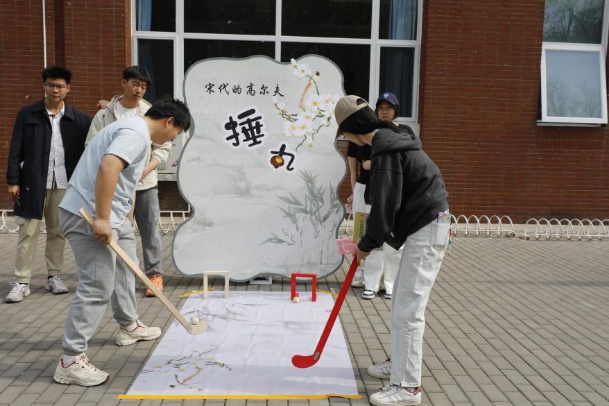 活动现场化身古今文化交融的立体画卷。九宫蹴鞠场上,彩鞠凌空划出优美弧线;春晖射艺区,羽箭破风直指靶心;礼乐投壶区,箭矢入壶激起青铜清响;古法捶丸竞技场,木槌击打声应和着此起彼伏的喝彩。师生们手持特制仿古运动器具体验传统项目,或在体感挥拍等科技项目中组队竞技,欢声笑语与春日暖阳交织,演绎出“体育让文物活起来”的生动实践。